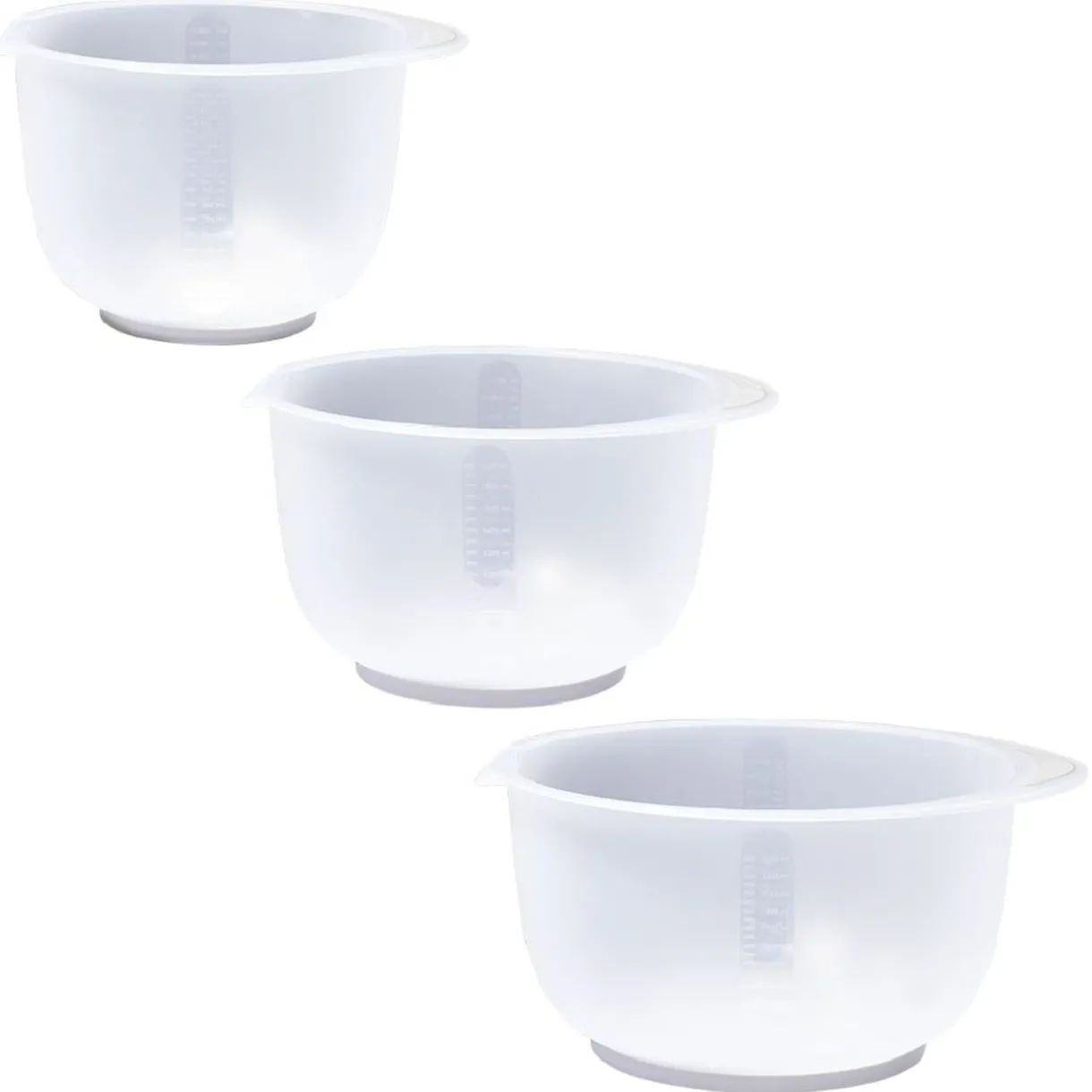 Lot de 3 bols à mixer en plastique transparent, idéal pour vos diverses préparations de pâtisserie.