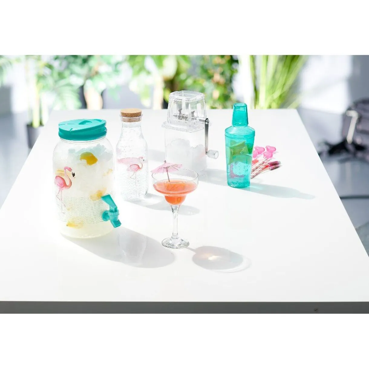 Ce broyeur à glace transparent avec manivelle et lame en métal vous permettra de préparer de la glace pilée en un tour de main!