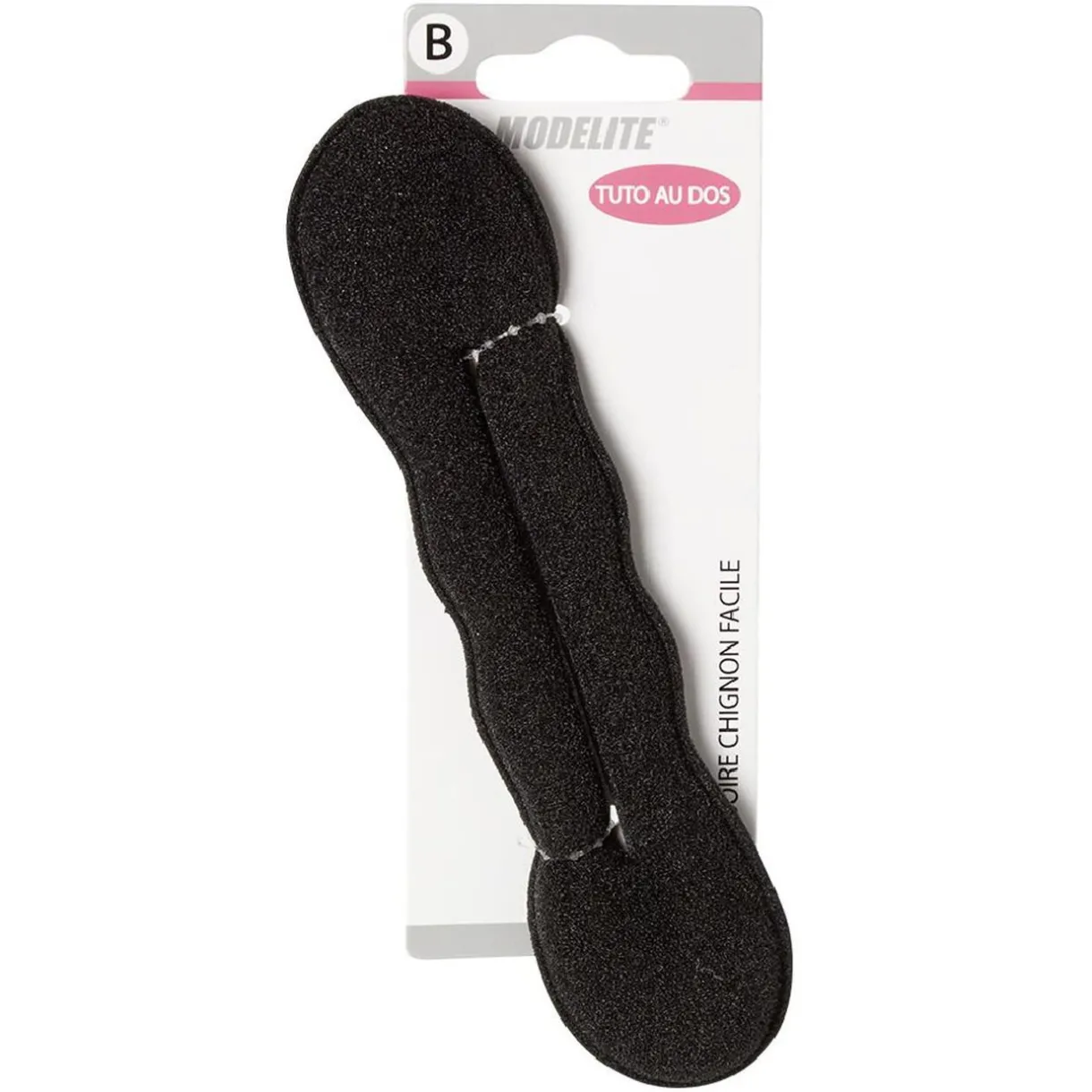 Accessoire à chignon en mousse avec tuto au dos du pack.