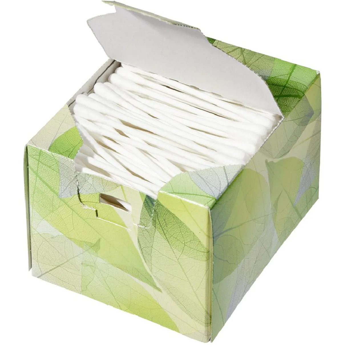 Boîte en plastique contenant 300 coton-tiges ouates blancs.