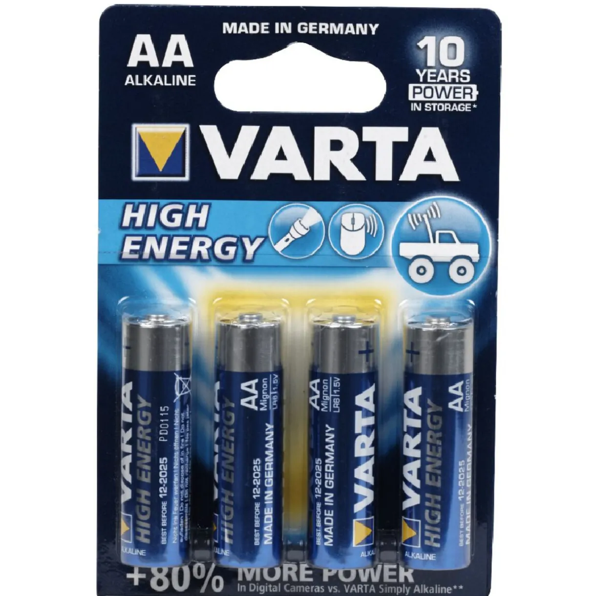 Lot de 4 piles alcaline LR06 High Energy, de la marque Varta.