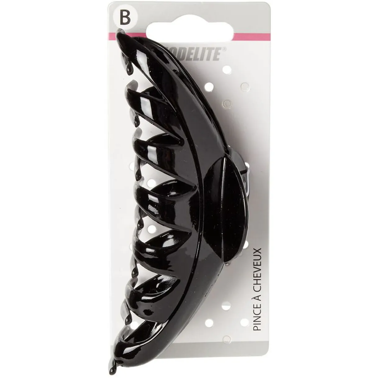 Pince crocodile en plastique uni noir brillant. Longueur : 13 cm