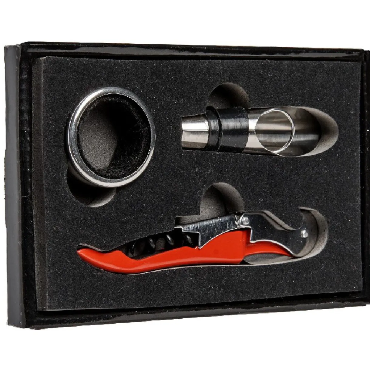Coffret comprenant 1 tire-bouchon, 1 bec et 1 anti-goutte.