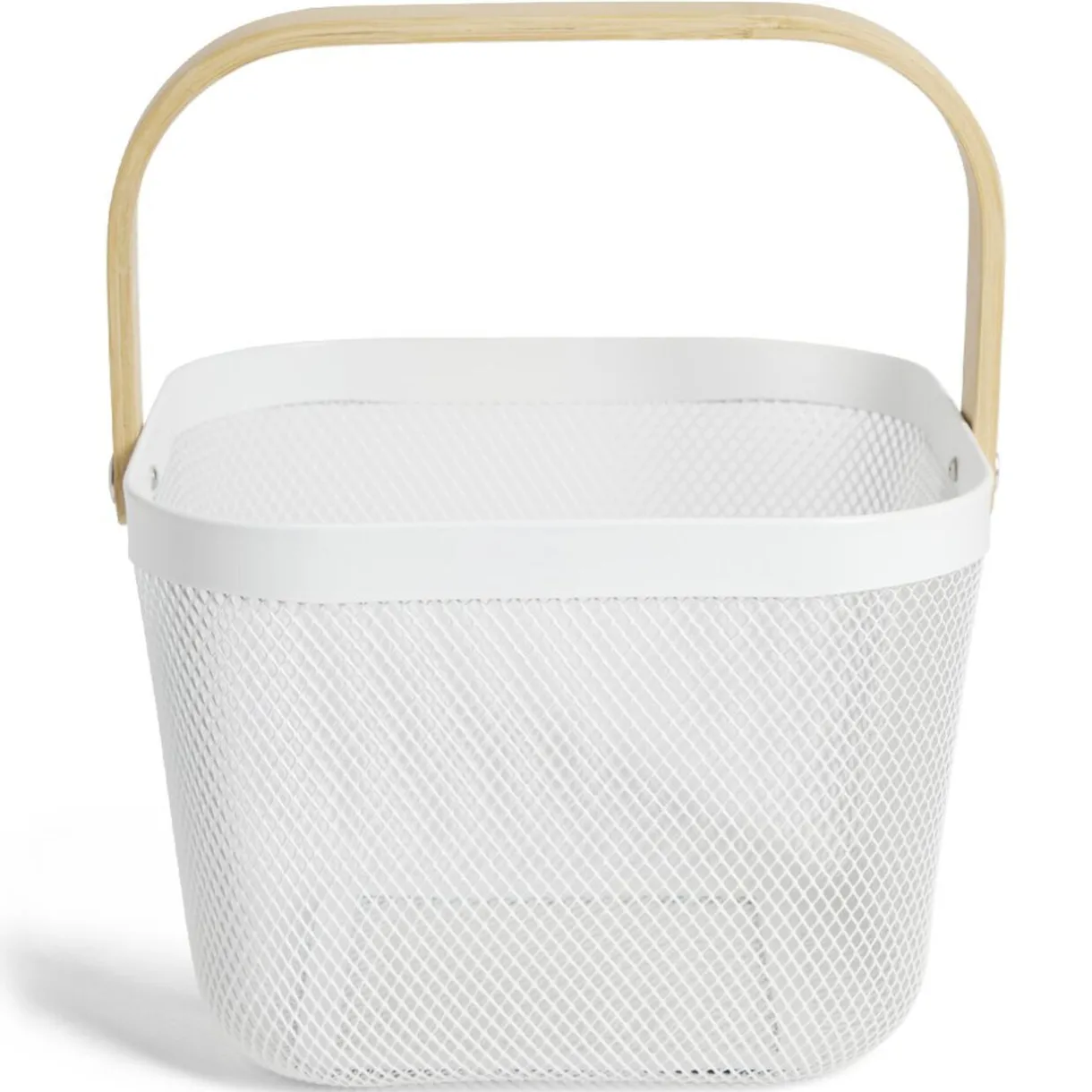Disposez vos fruits élégamment avec cette corbeille en métal blanc façon mesh agrémentée d’une anse en bambou.