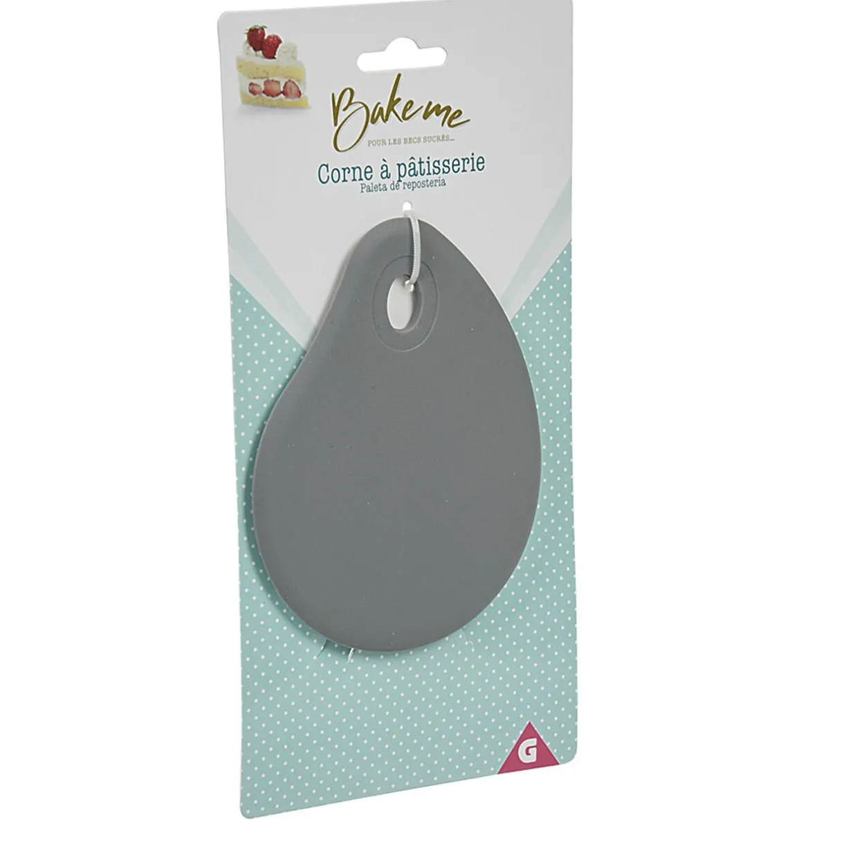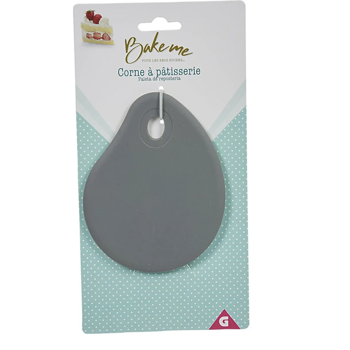 Corne de pâtissier en silicone gris. Cet accessoire multi-tâche vous servira de coupe pâte, de raclette et pour étaler votre crème ou pâte en pâtisserie.