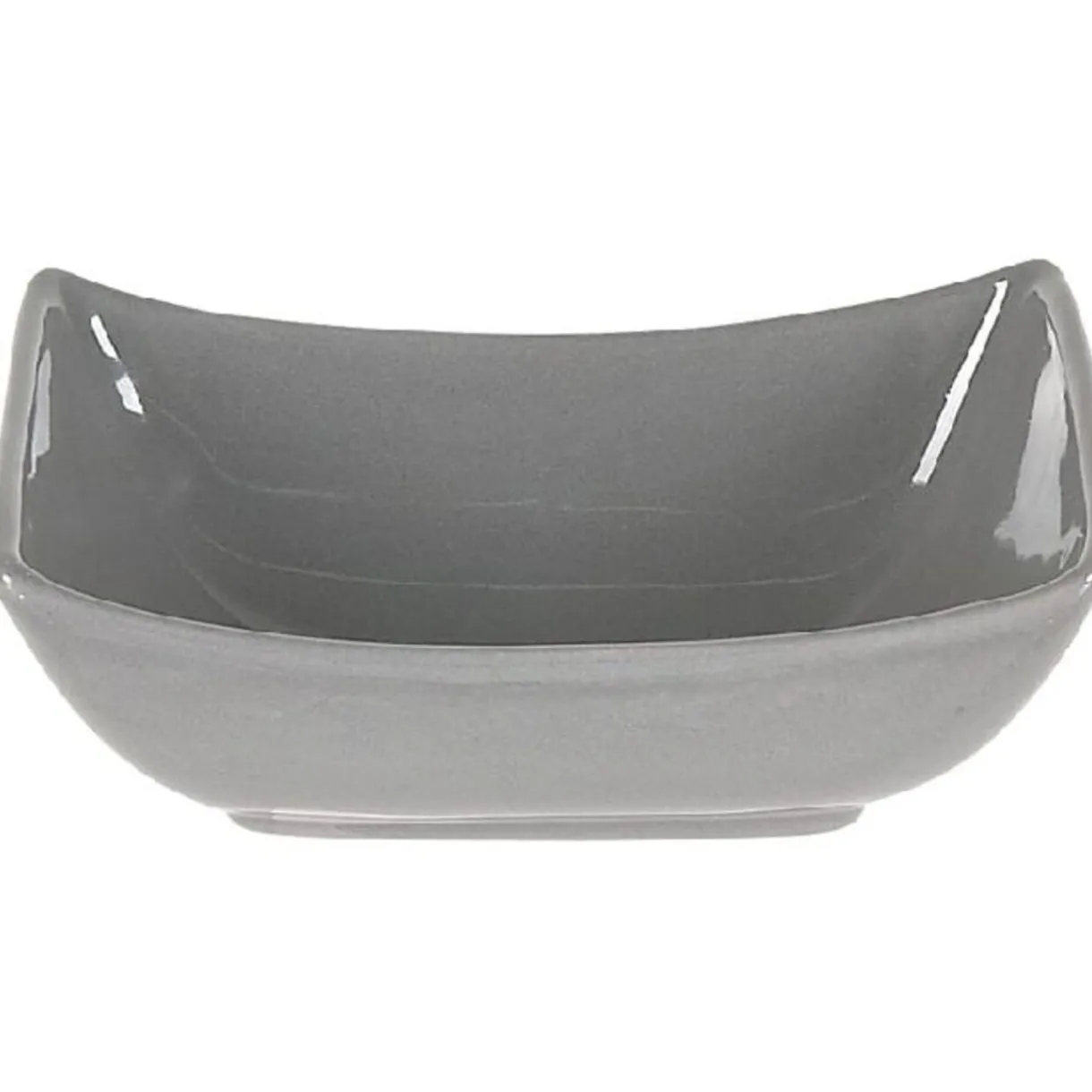 Coupelle, en céramique, de 12.5×8 cm de dimensions et de couleur grise foncée.