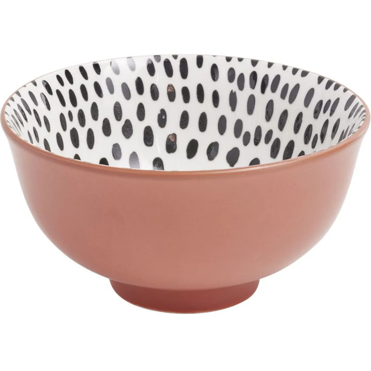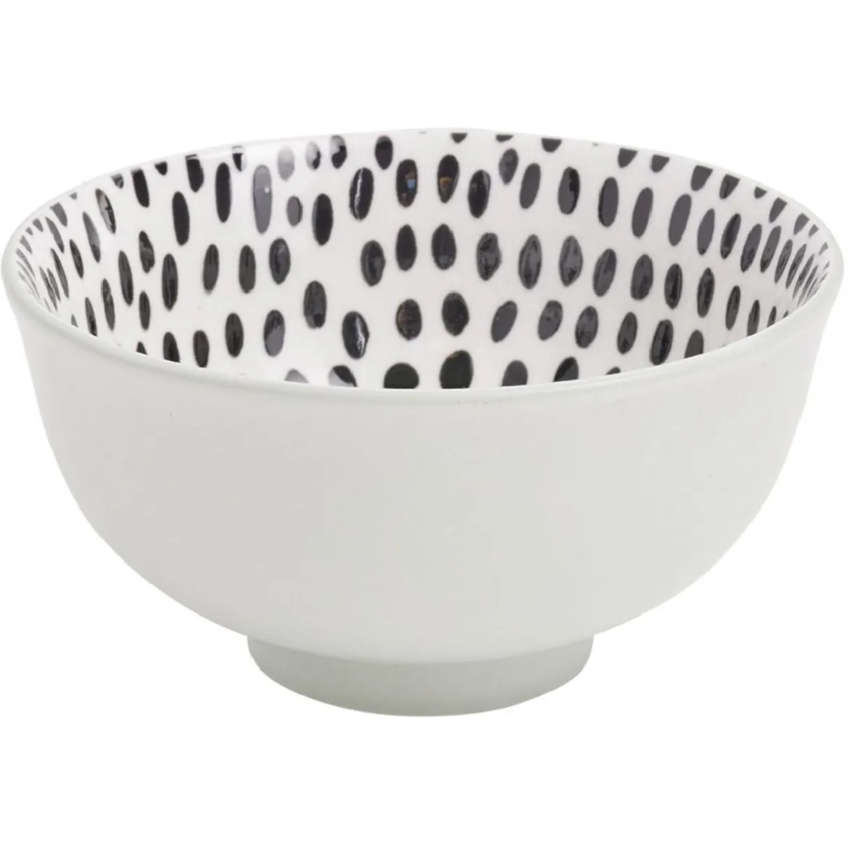 Coupelle en porcelaine coloré uni à l’extérieur et avec intérieur décor noir et blanc.