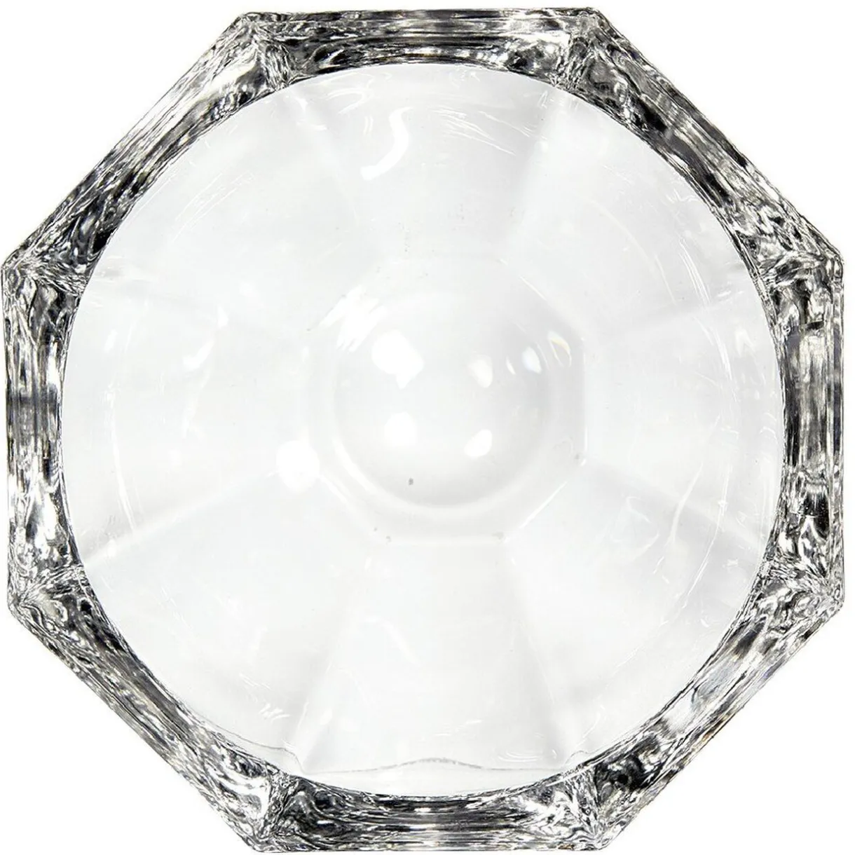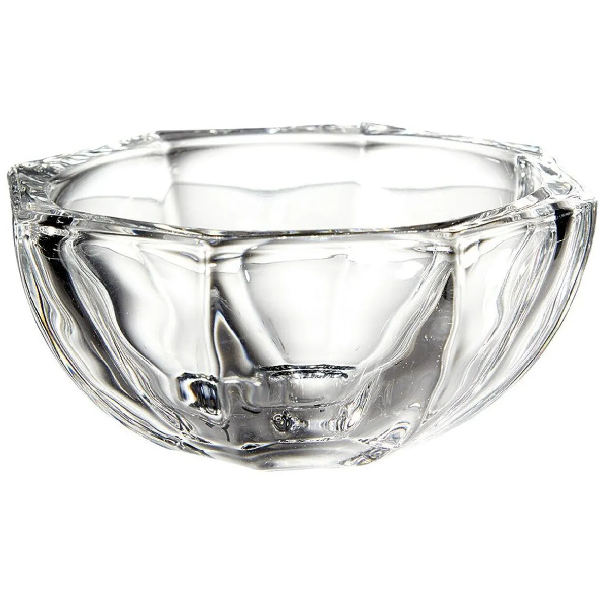 Coupelle octogonale en verre transparent de 12 cm de diamètre.
