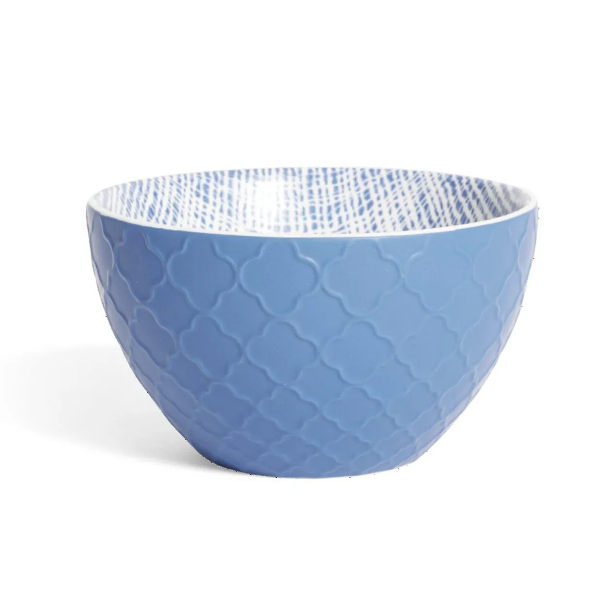 À l’intérieur, elle offre un motif effet tissé blanc sur fond bleu, ajoutant une note subtile et raffinée à votre service de table.