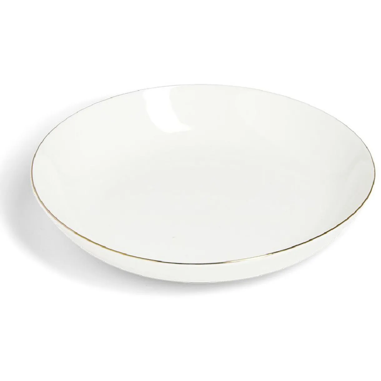 Pour présenter vos aliments joliment sur votre table de fête, cette coupelle blanche avec bordure dorée est idéale.