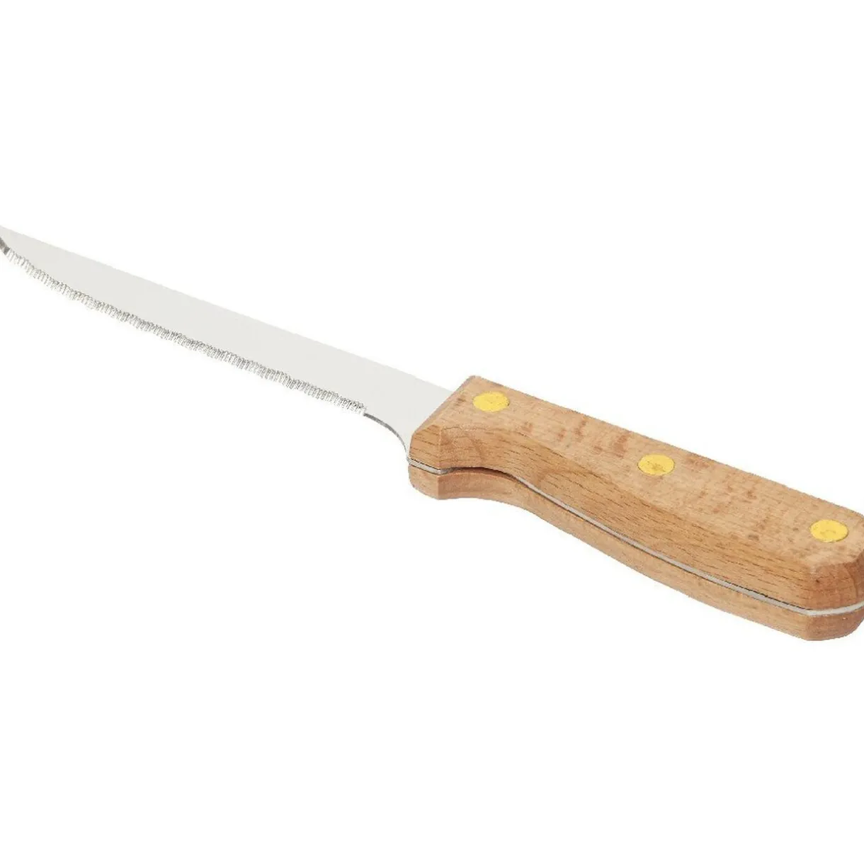 4 couteaux à steak en acier avec manche en bois, L. 22 cm.