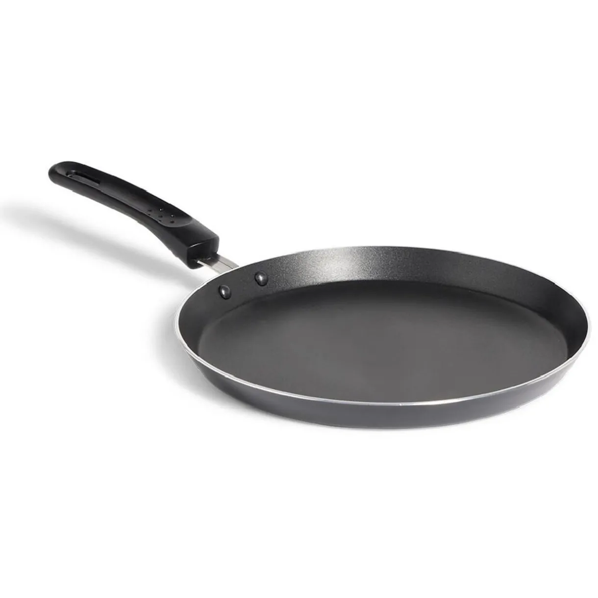 Crêpière de 26 cm de diamètre en aluminium rouge ultralégère et facile à manipuler.