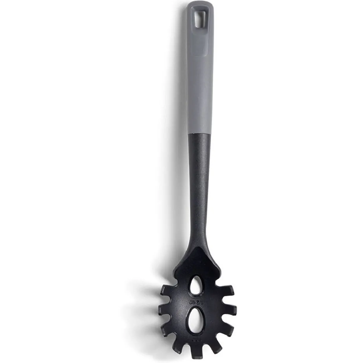Résistante et facile à nettoyer, cette cuillère à spaghetti en plastique noir et gris vous servira au quotidien pour mélanger et servir pâtes, nouilles et autres aliments. Avec son rebord relevé et ses fentes, elle permet un bon maintien tout en filtrant un maximum de sauce.
