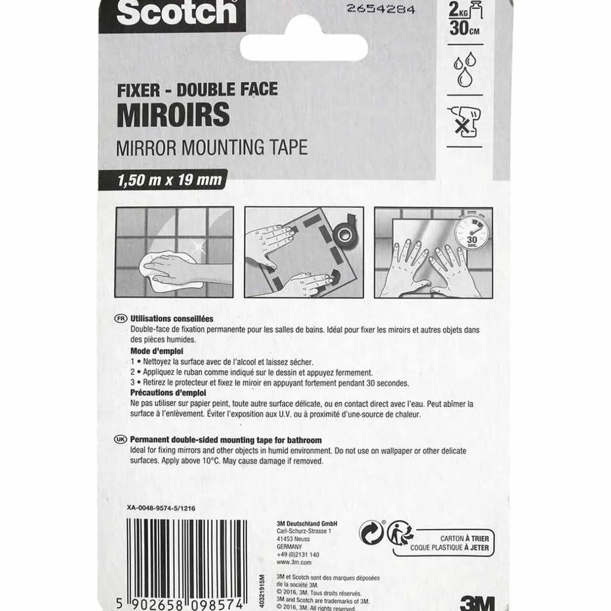 Scotch double face waterproof avec effet miroir sur une face, idéal pour fixer vos éléments jusqu’à 2 kg.
