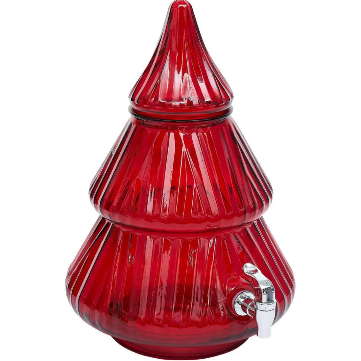 Pour rester dans le thème, servez votre boisson dans ce distributeur en verre en forme de sapin rouge.