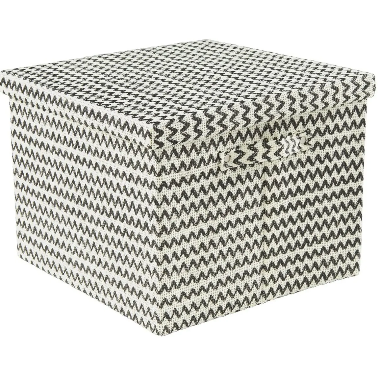 Boîte de rangement pliable avec couvercle à motif zig zag noir et blanc.