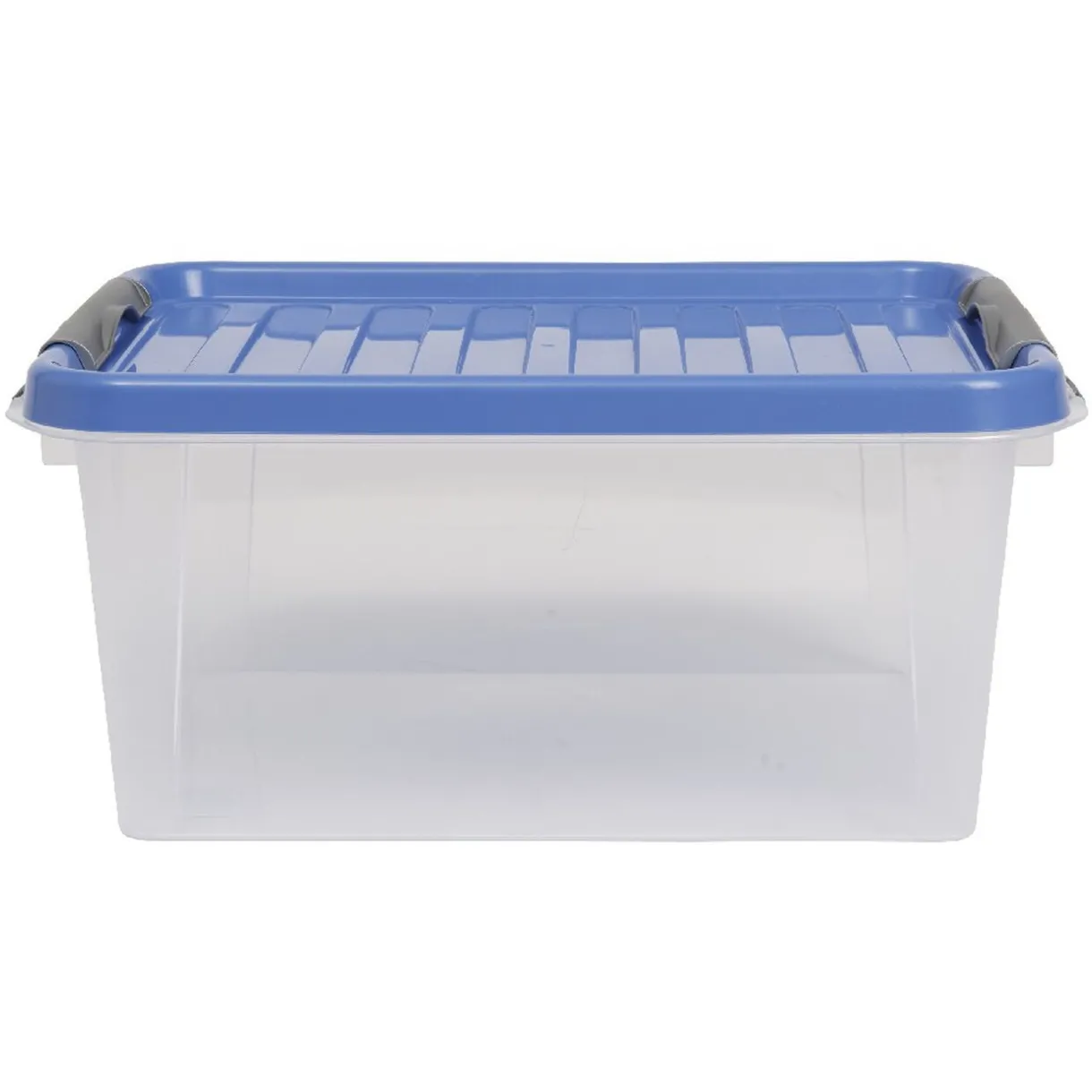 Rangez toutes vos affaires dans ce box de rangement au couvercle bleu roi, avec 2 clips pour le maintenir fermé, d’une contenance de 14 L.