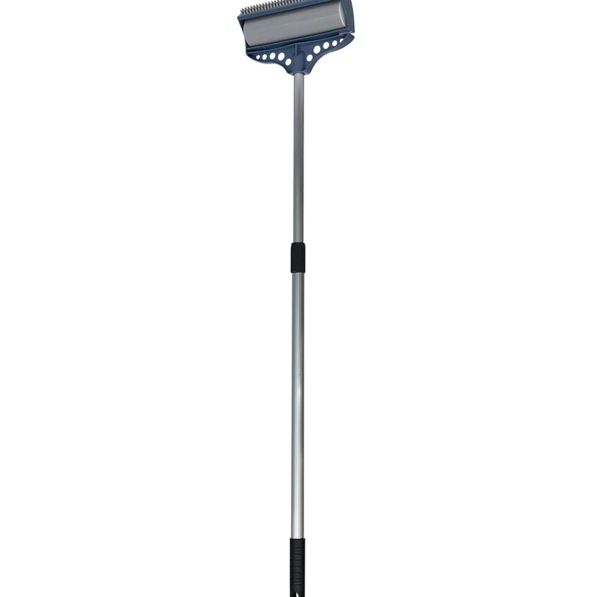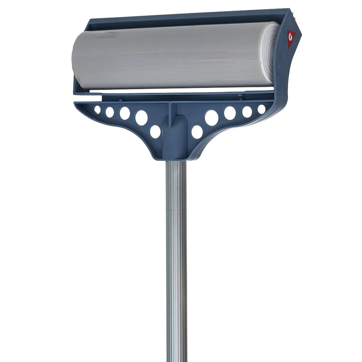 Brosse adhésive lavable avec raclette et manche télescopique pour nettoyer les sols et toutes les surfaces difficiles d’accès.