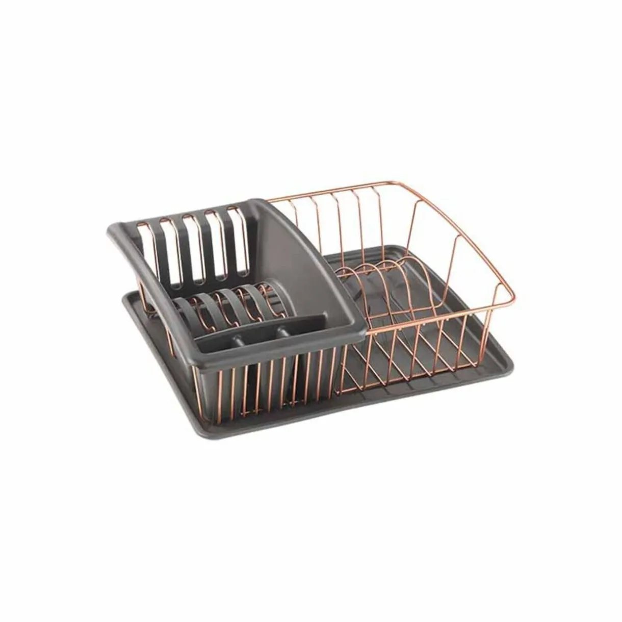 Égouttoir Metaltex avec armature en métal couleur cuivre, idéal pour donner une touche vintage à votre cuisine tout en alliant le côté pratique.