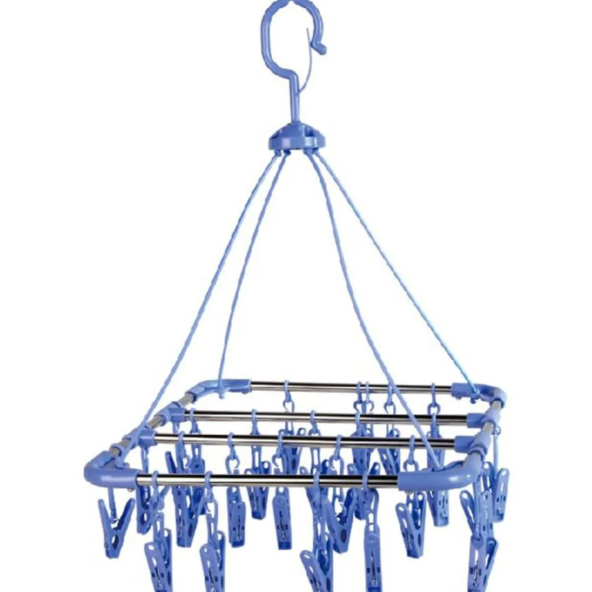 Séchoir, dim. 31,5×31,5×38 cm, 24 pinces, inox et plastique. Différents coloris, disponibilité selon arrivage.