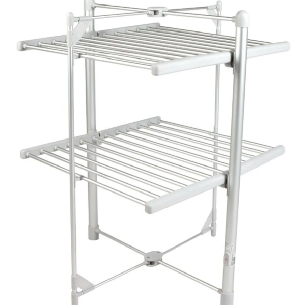 Sechoir tour électrique de dim. 73×74,5×100 cm, puissance 200 W, aluminium et PVC, fonctionne sur secteur..