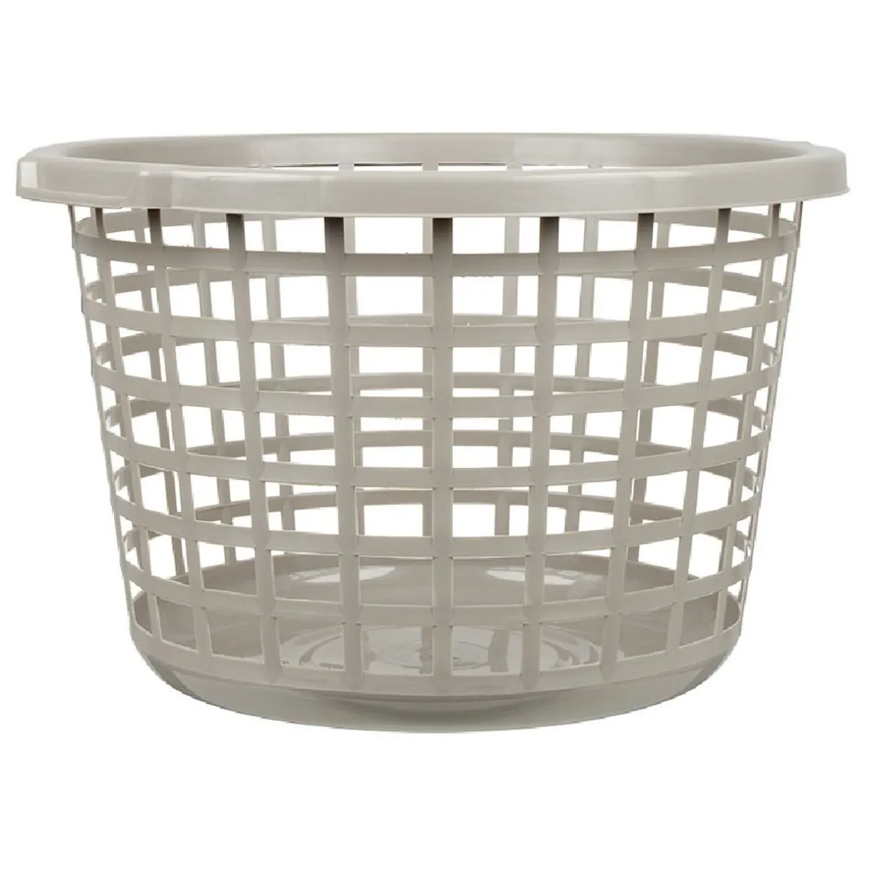 Panière ajourée ronde en plastique, idéale pour le linge.