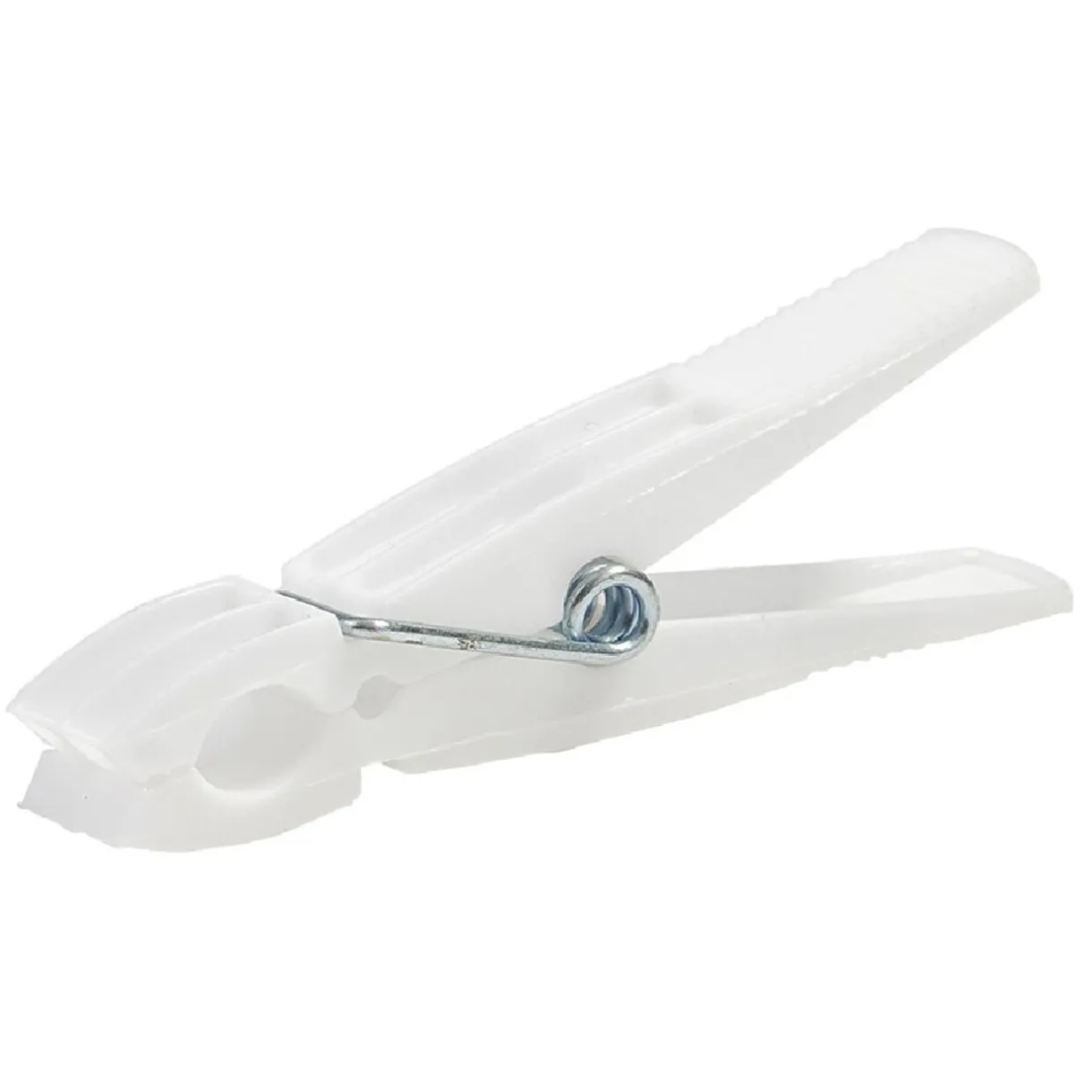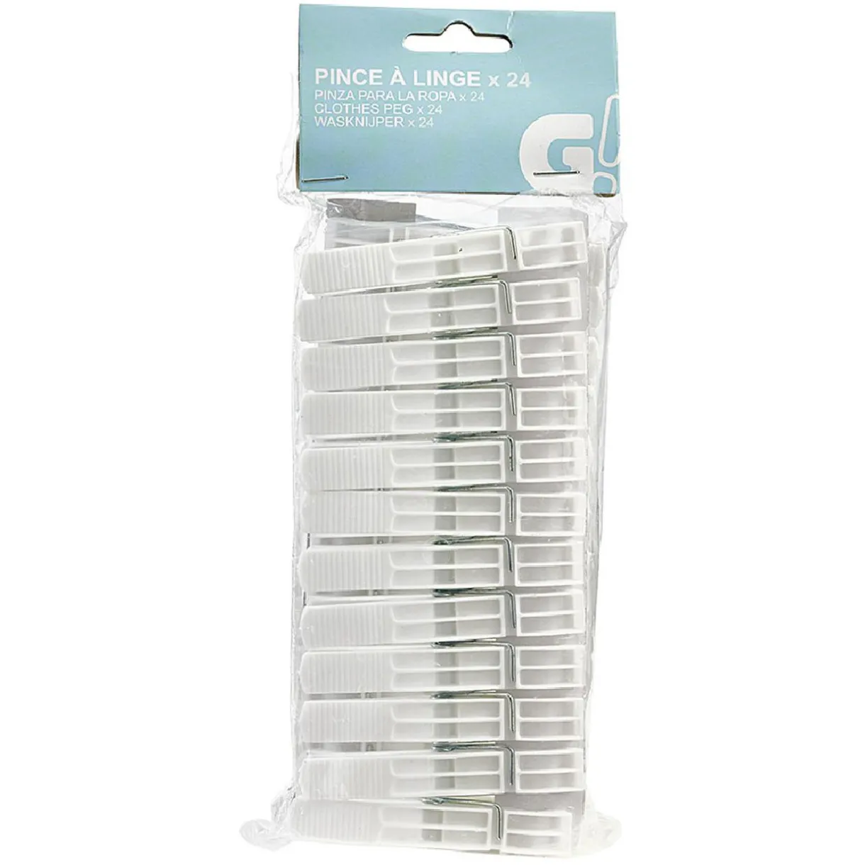 Lot de 24 pinces à linge en plastique blanc.