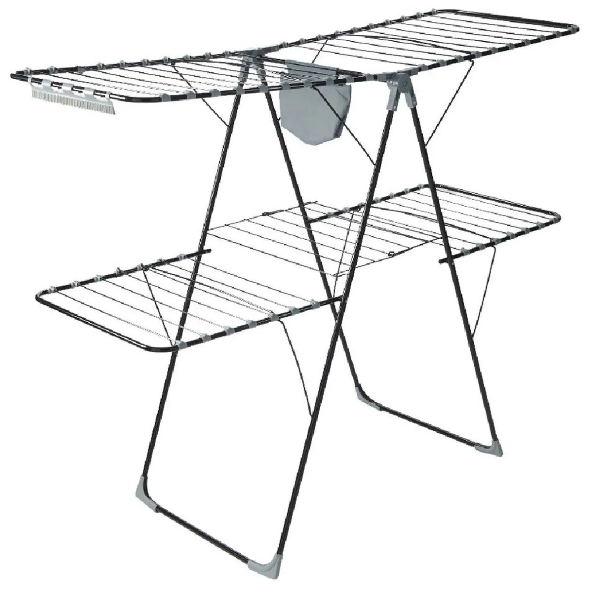 Séchoir horizontal gris et noir sur deux niveaux avec une capacité de 32 mètres d’étendage.