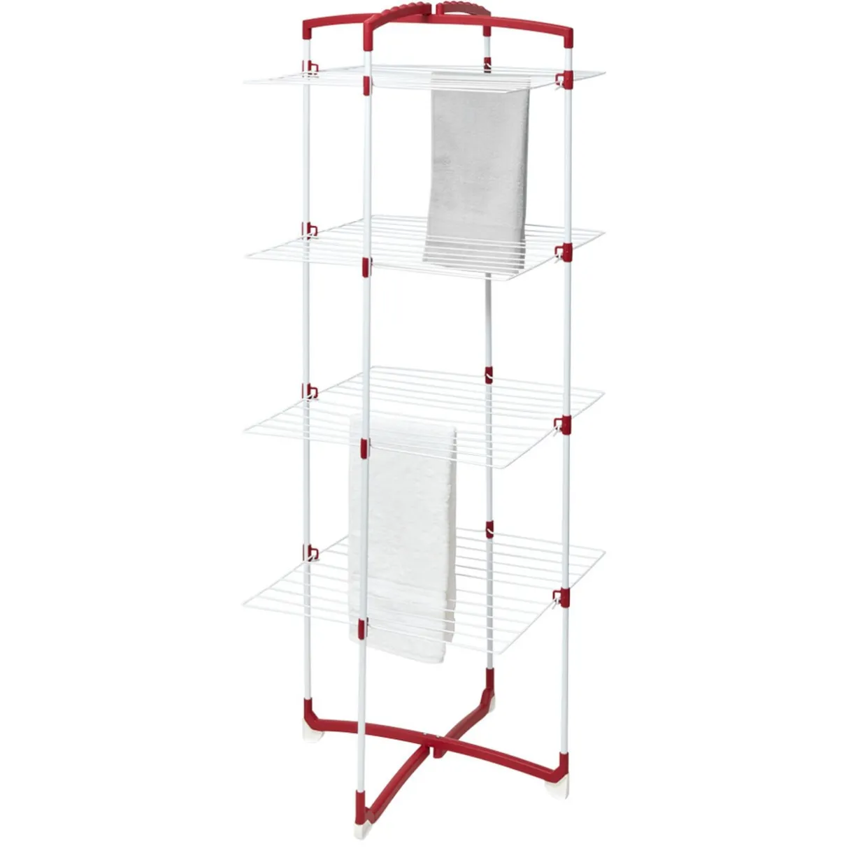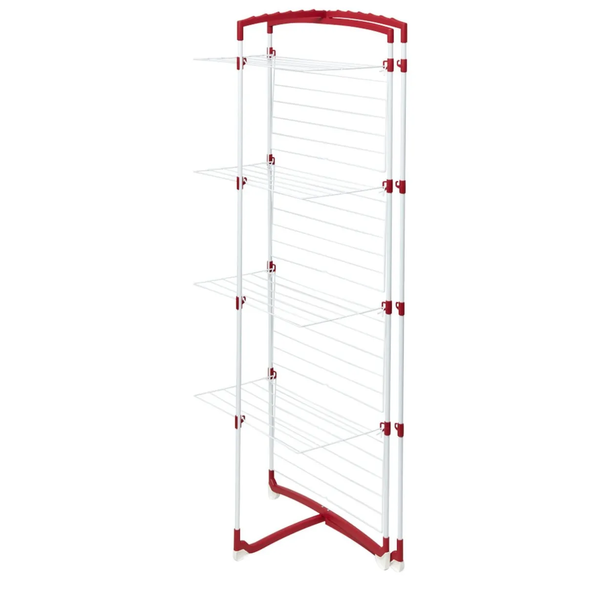 Libérez votres espace intérieur pour faire sécher votre linge grâce à ce séchoir tour de 33 mètres de couleur rouge et blanche. Une fois votre linge séché, ce séchoir se rangera très facilement grâce à son système pliable. Très pratique et résistant, il s’avèrera vite indispensable !