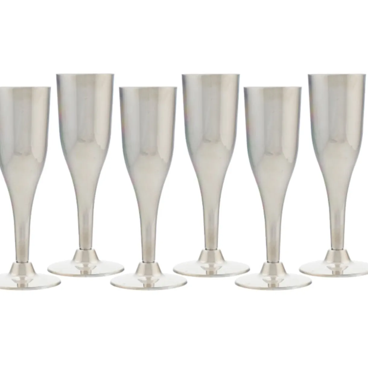 6 flûtes argentées, dim. h.17 x ø5 cm, plastique.