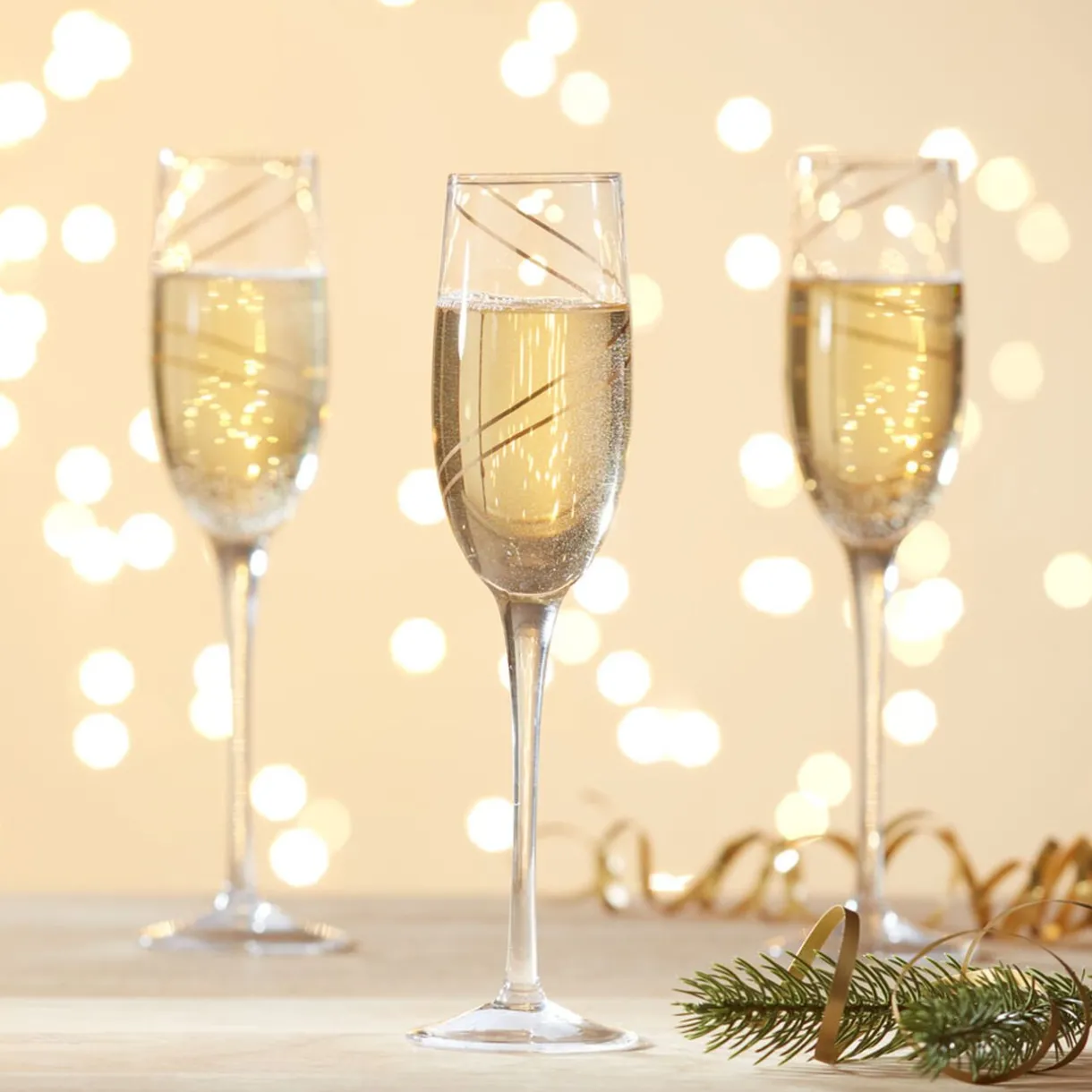 Faites plaisir à vos invités en leur servant du champagne ou du vin pétillant dans ces flûtes en verre design. Dotées de formes délicates, ces flûtes offrent une meilleure prise en main. Avec un calice décoré d’un ruban doré, ces flûtes originales conviendront à toutes les occasions, Noël, anniversaire ou mariage.