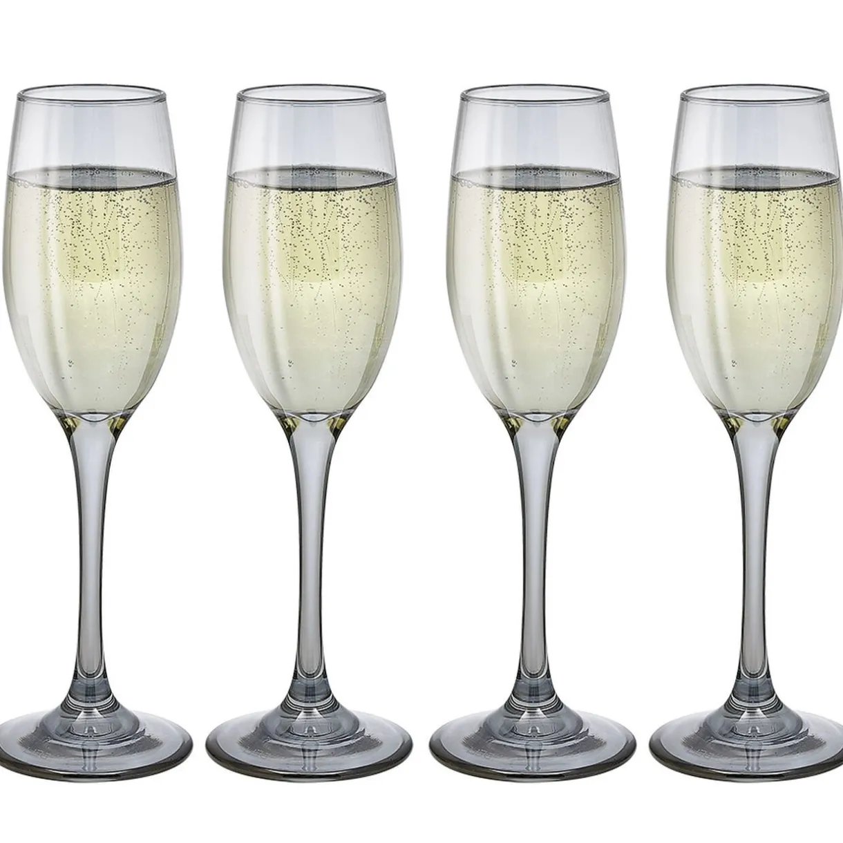 Ce lot de 4 flûtes en verre argenté sera du plus bel effet sur votre table de fête.