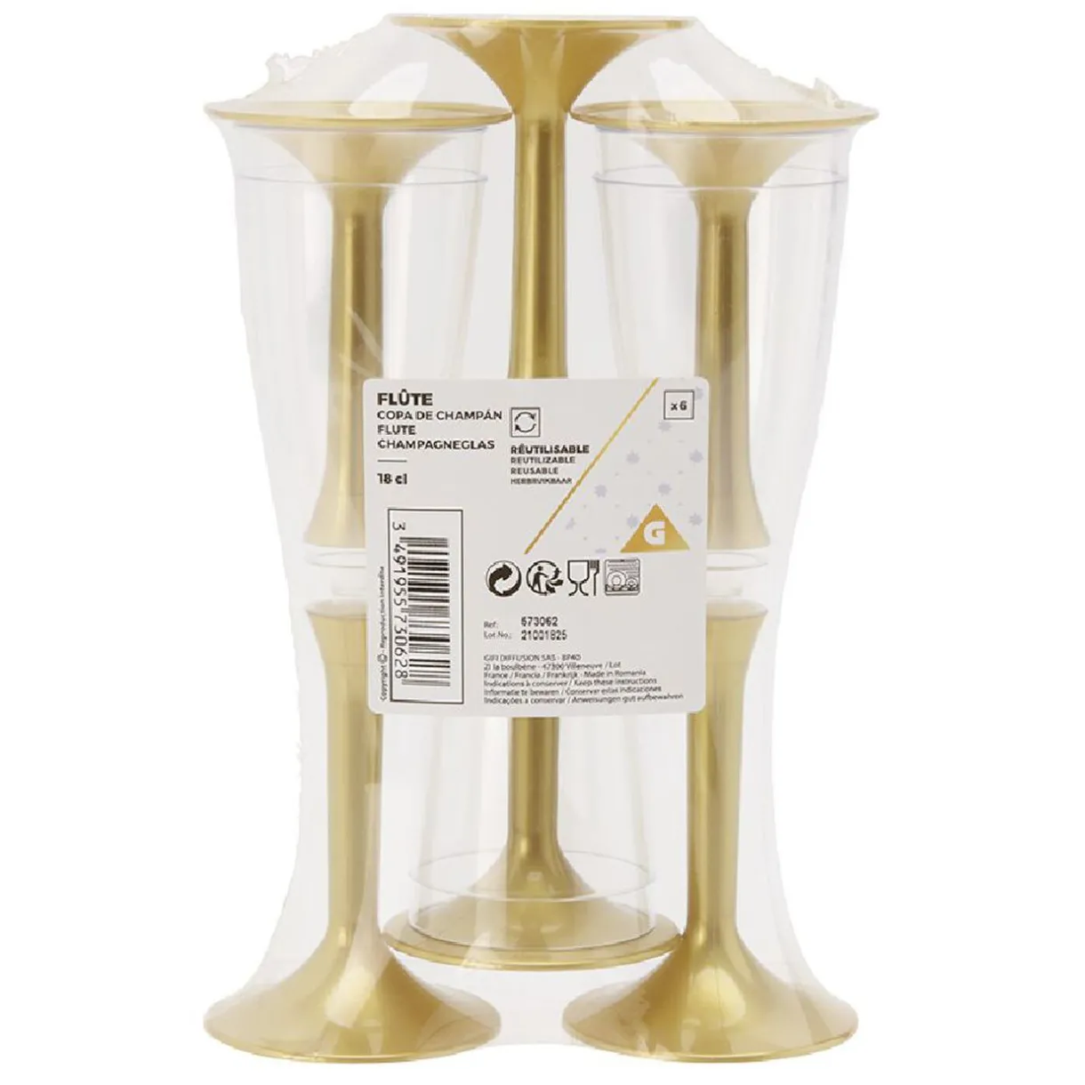 Lot de 6 flûtes dorées en plastique réutilisable pour déguster votre champagne en période de fête !