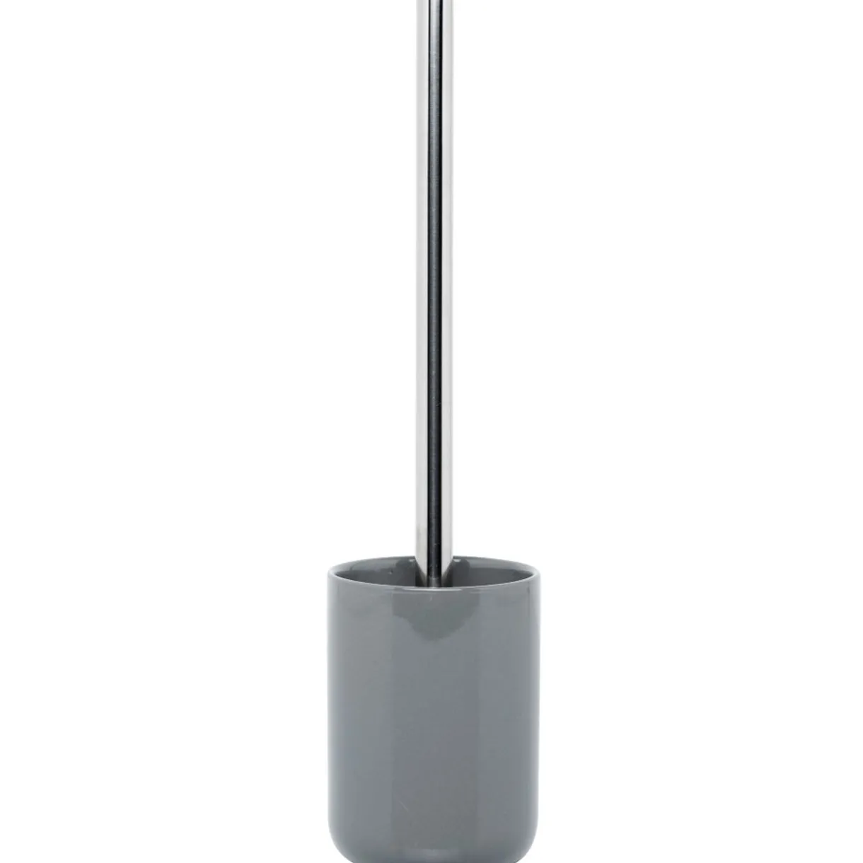 Brosse WC avec socle en céramique uni gris et manche gris chromé.