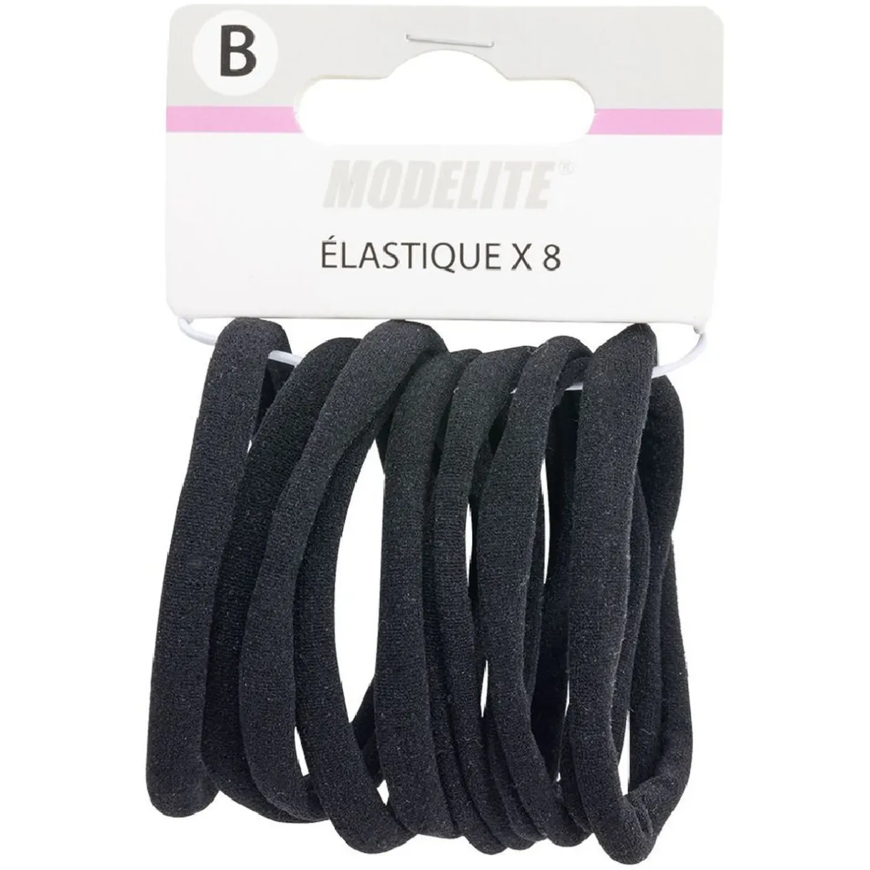 Lot de 8 élastiques noirs en mousse. Doux au toucher et agréables à porter, ils ne cassent pas les cheveux.