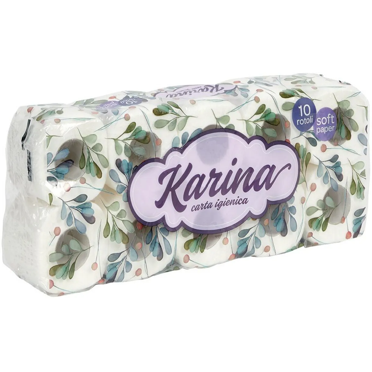 Lot de 10 rouleaux de papier WC Karina blanc (140 feuilles x10) – L.51,5xl.20,6xH.9,5 cm.