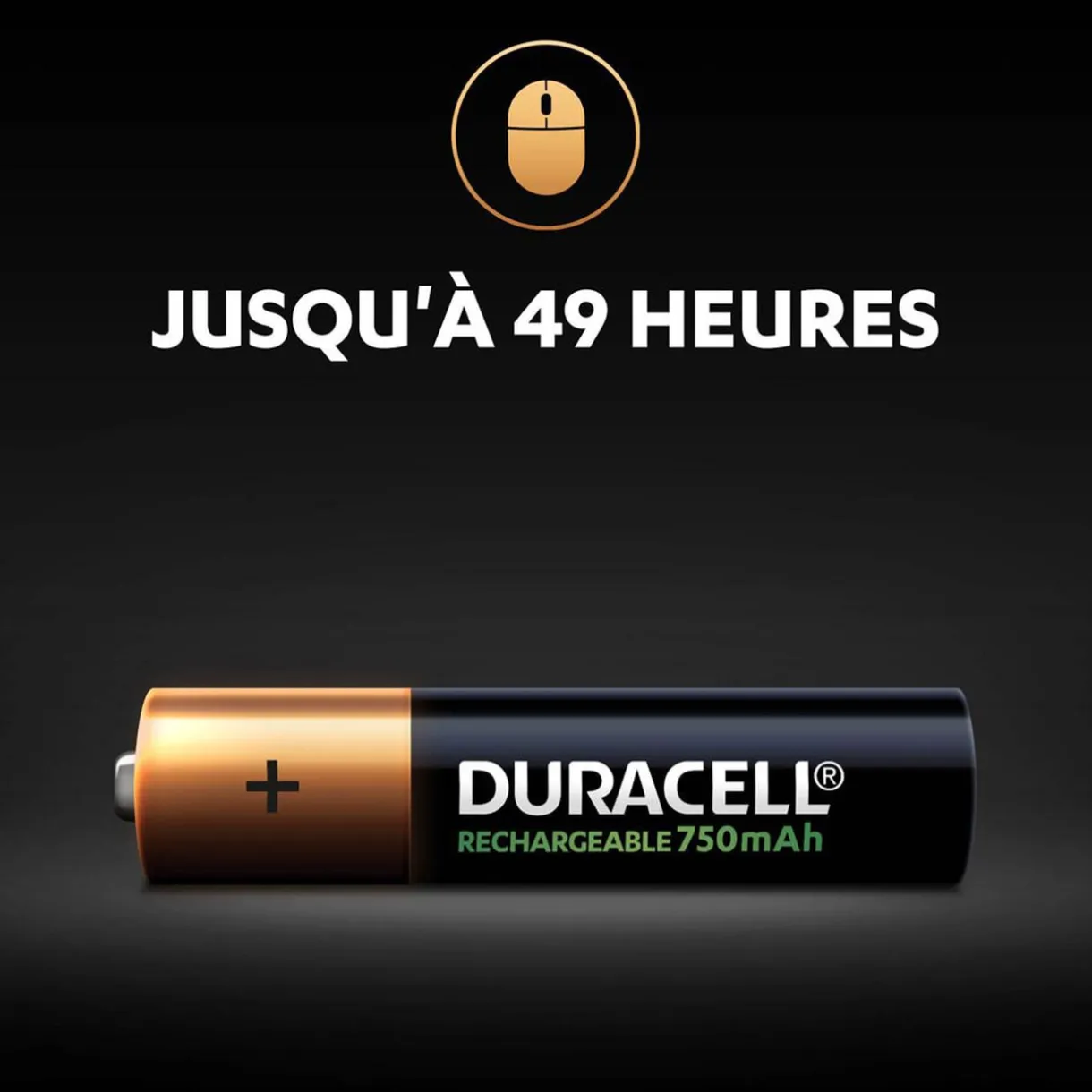 Lot de 4 piles rechargeables Duracell de type AAA 750mAh. Idéales pour alimenter efficacement tous vos appareils du quotidien, les piles AAA Duracell Recharge 750mAh peuvent être rechargées jusqu’à 100 fois. Non utilisées, elles resteront chargées jusqu’à 6 mois.