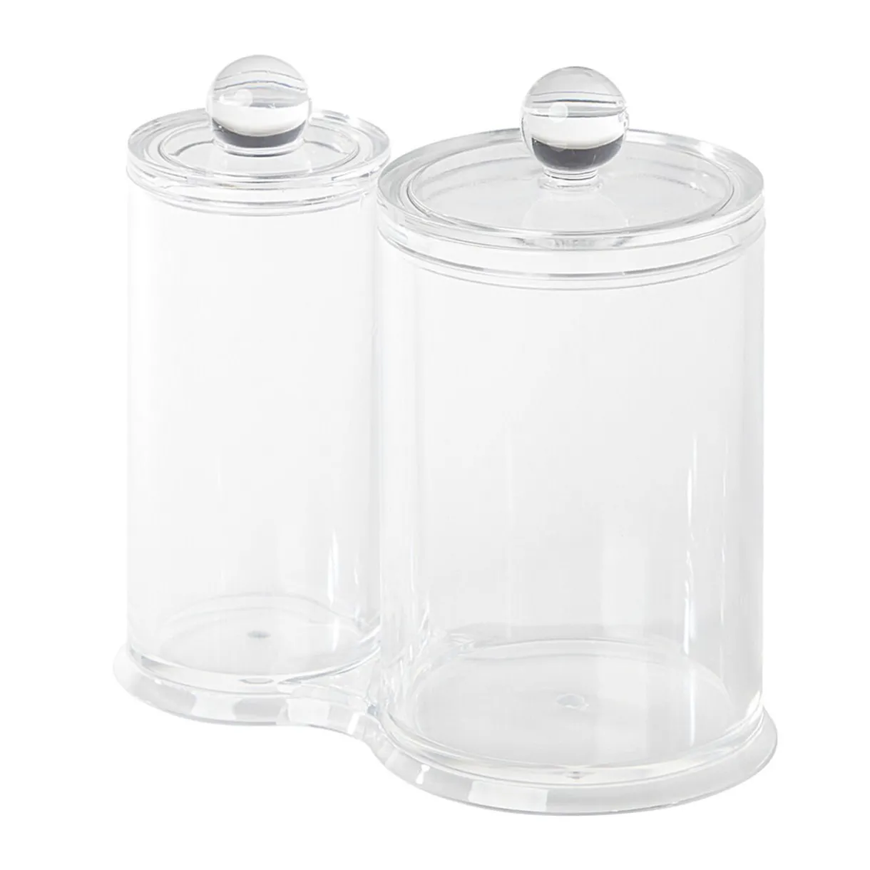 Range coton transparents avec deux éléments fixes pour y ranger vos disques de coton et vos cotons-tiges. Idéals pour optimiser le rangement de votre salle de bain !