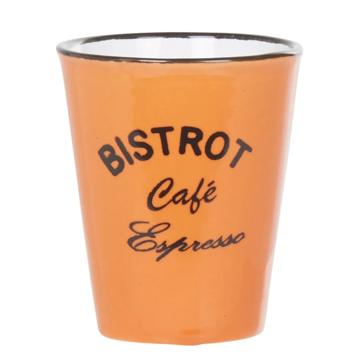 Lot de 4 gobelets orange, bleu nuit, gris et vert d’eau avec inscription Bistrot.