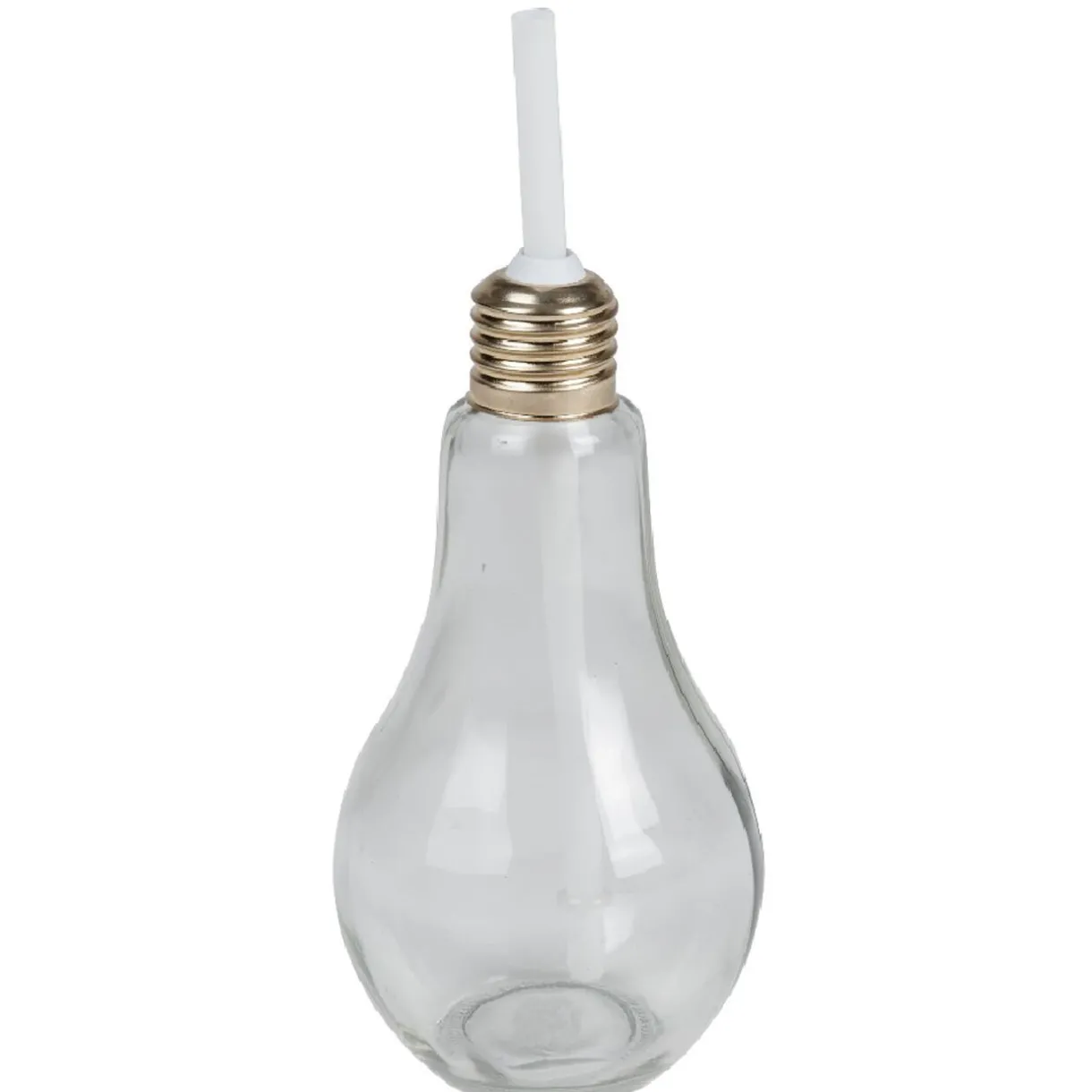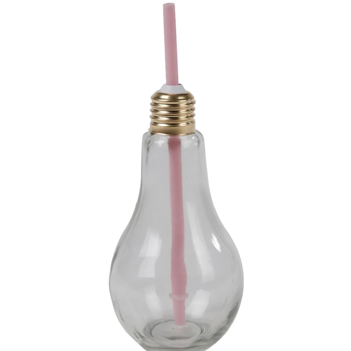 Verre en forme d’ampoule avec paille colorée.