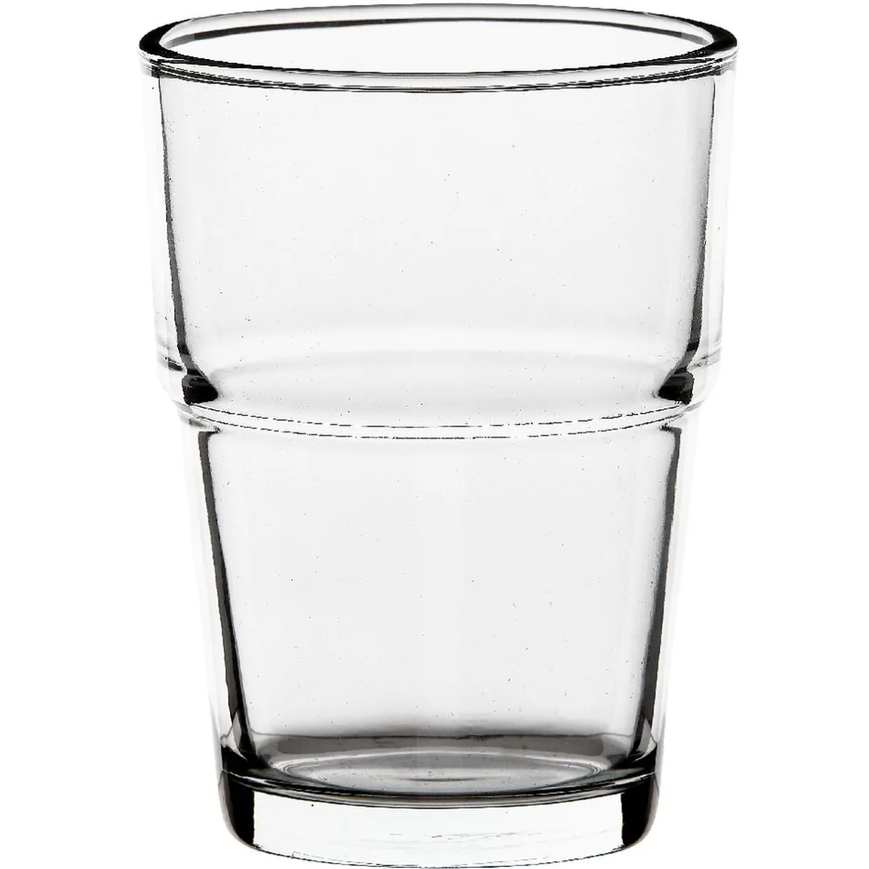 Lot de 6 verres à eau gobelet en verre transparent et empilables : un basique indémodable, peu encombrant et toujours très utile. Faible contenance particulièrement adaptée aux enfants.