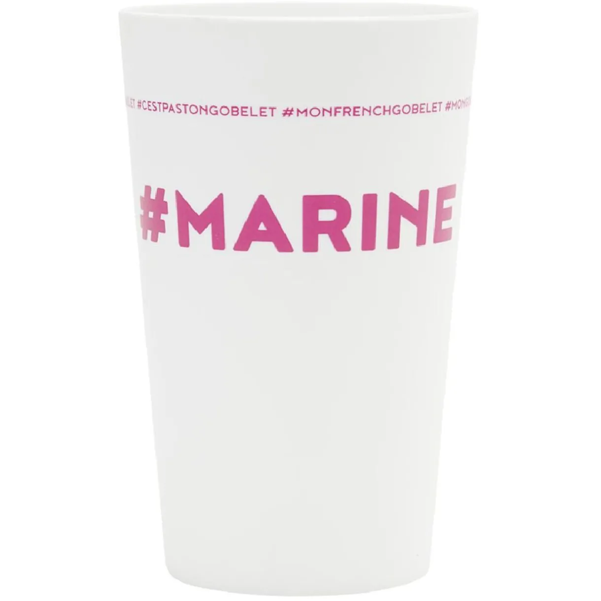 Gobelet réutilisable en plastique blanc avec inscription rose #MARINE.
