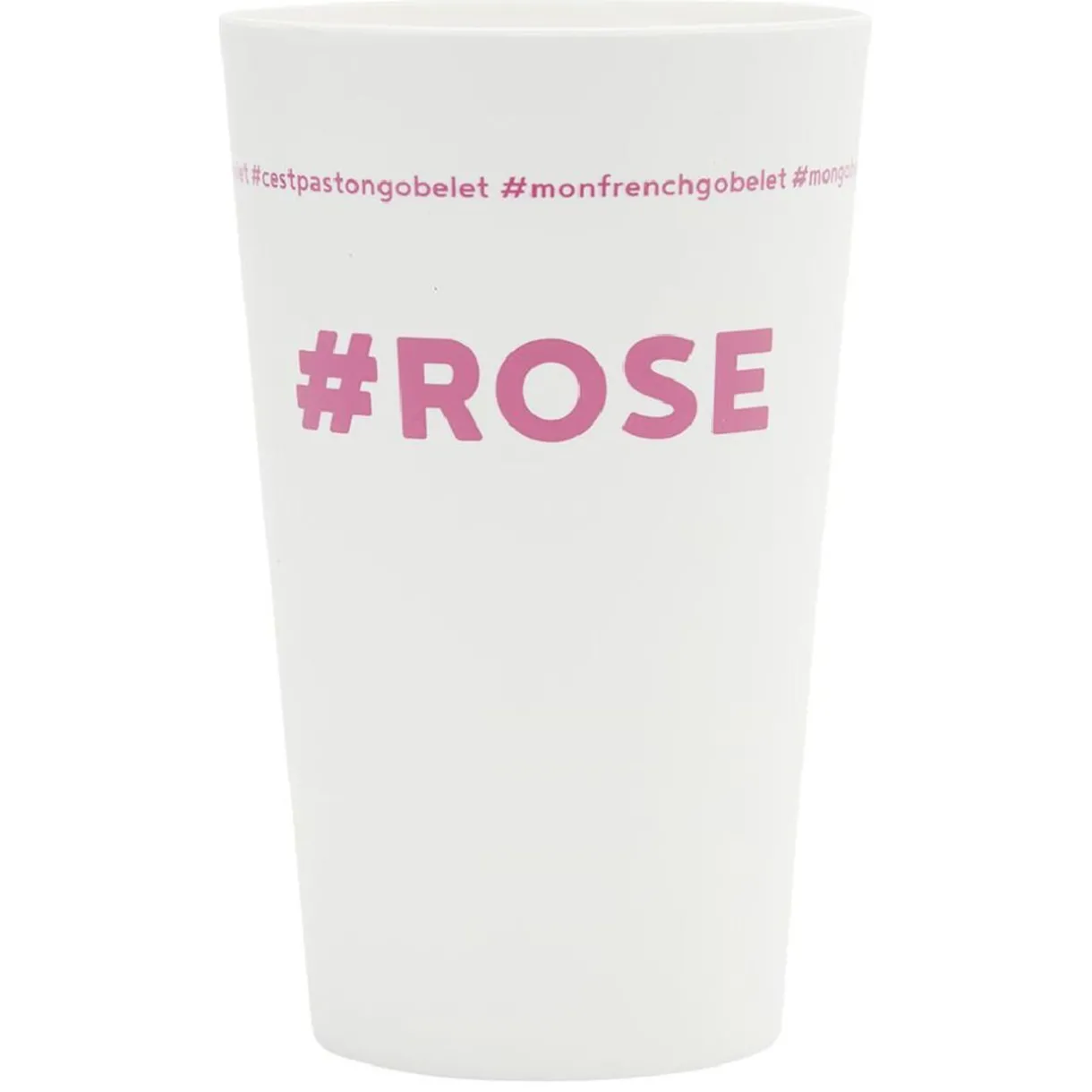 Gobelet réutilisable en plastique blanc avec inscription rose #ROSE.