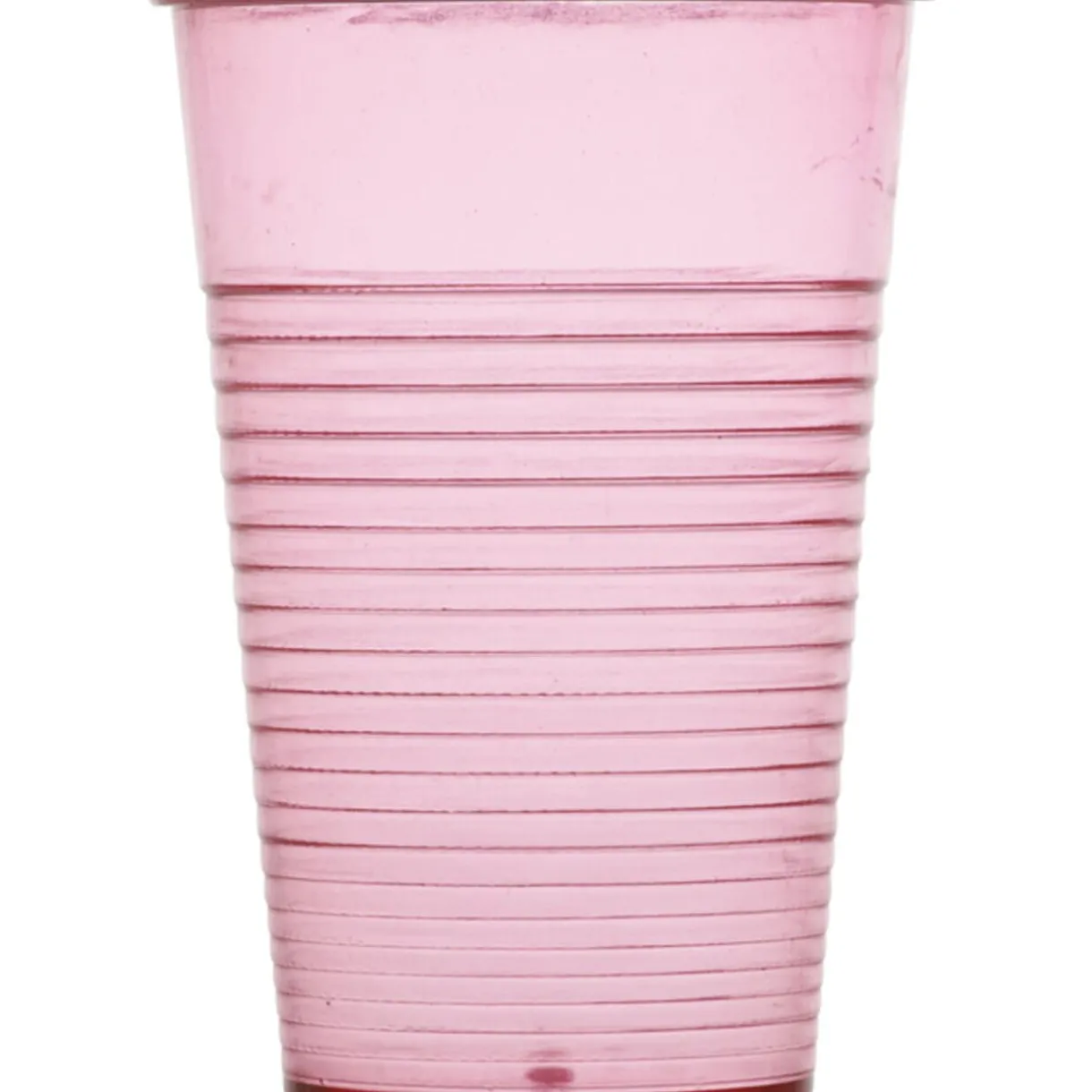 4 gobelets en plastique rose transparent, cont. 20 cl, dim. 10×7 cm.