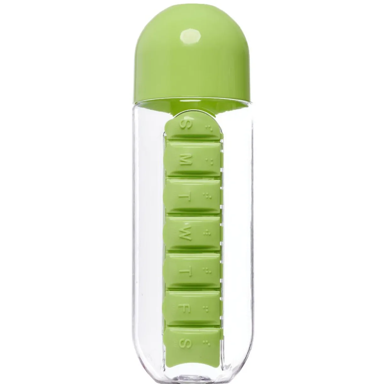 Gourde pilulier hebdomadaire transparente et verte^Gifi