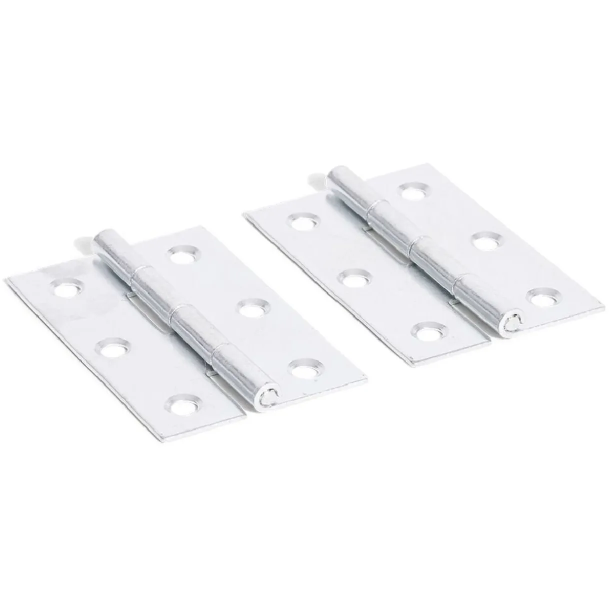 Lot de 2 charnières en acier de 60×35 mm pour meubles et portes légères.