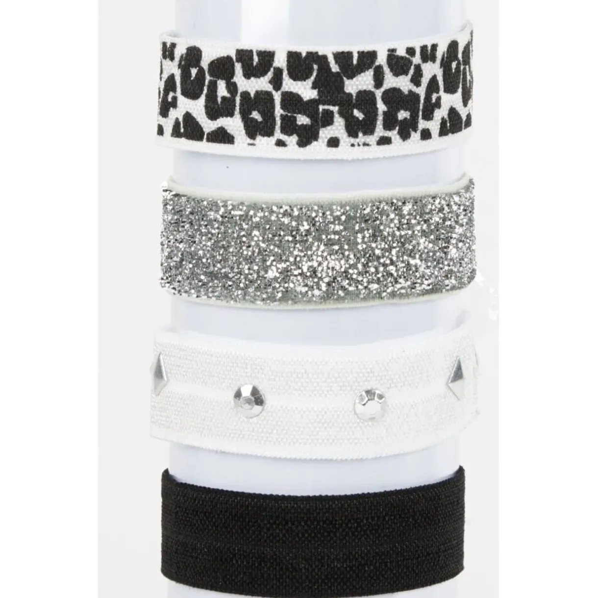 Lot de 4 élastiques à cheveux transformables en bracelet fantaisie.
