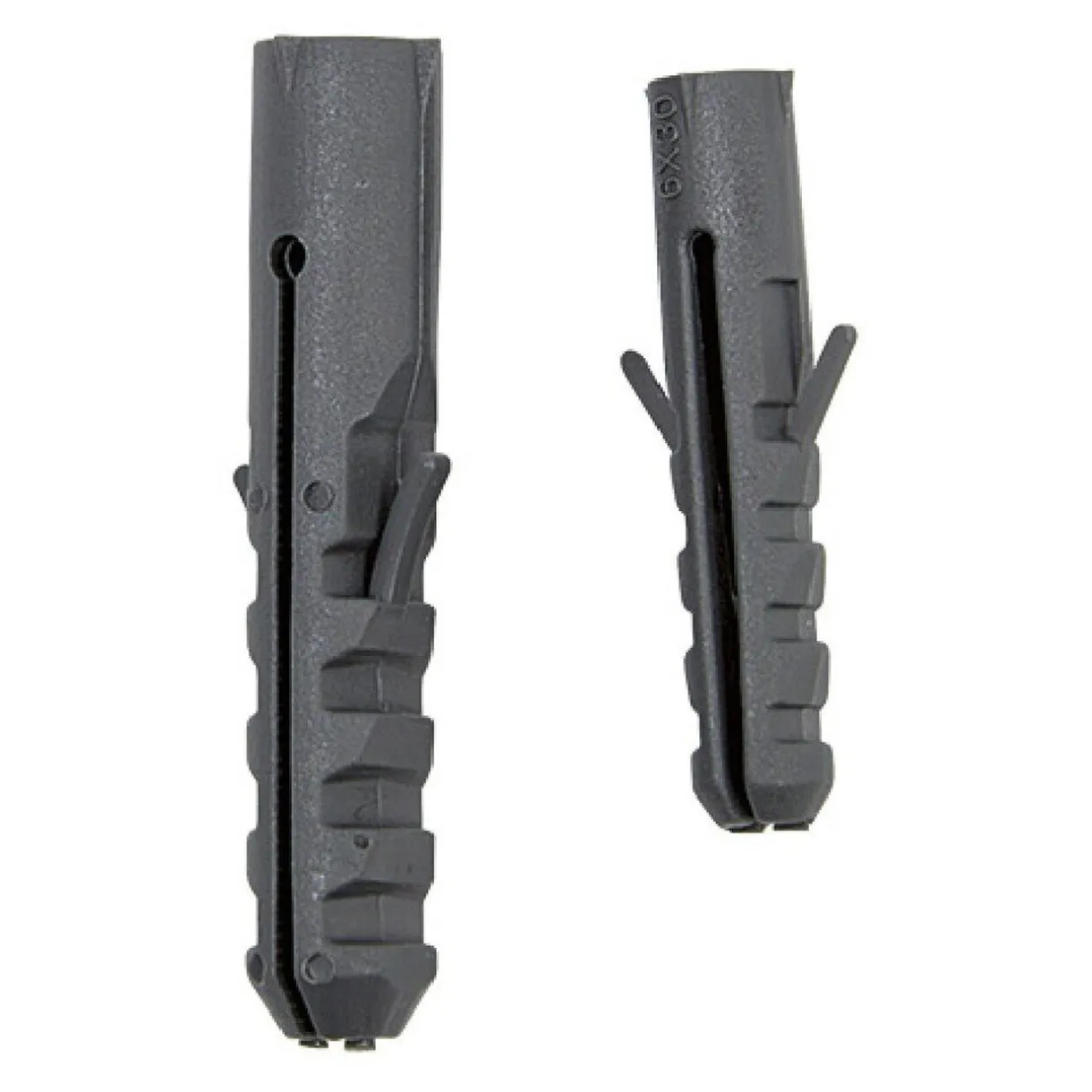 Lot de 150 chevilles de diamètre différent en plastique de couleur grise.