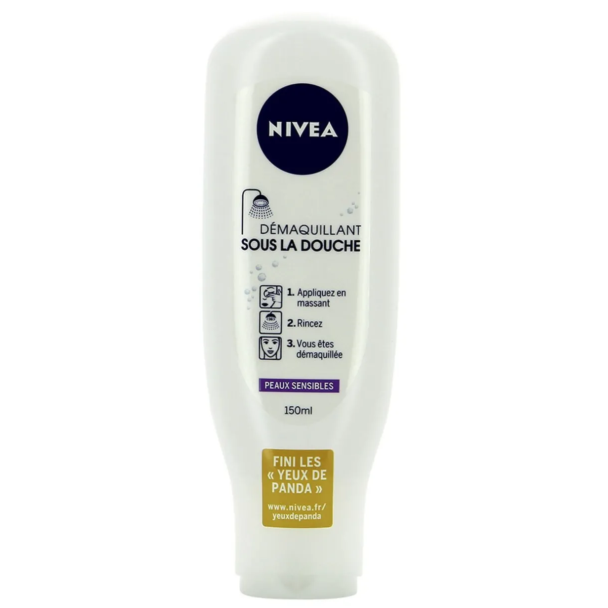 Éliminez efficacement maquillage et mascara sans frotter ni agresser la peau avec le démaquillant sous la douche Nivea.