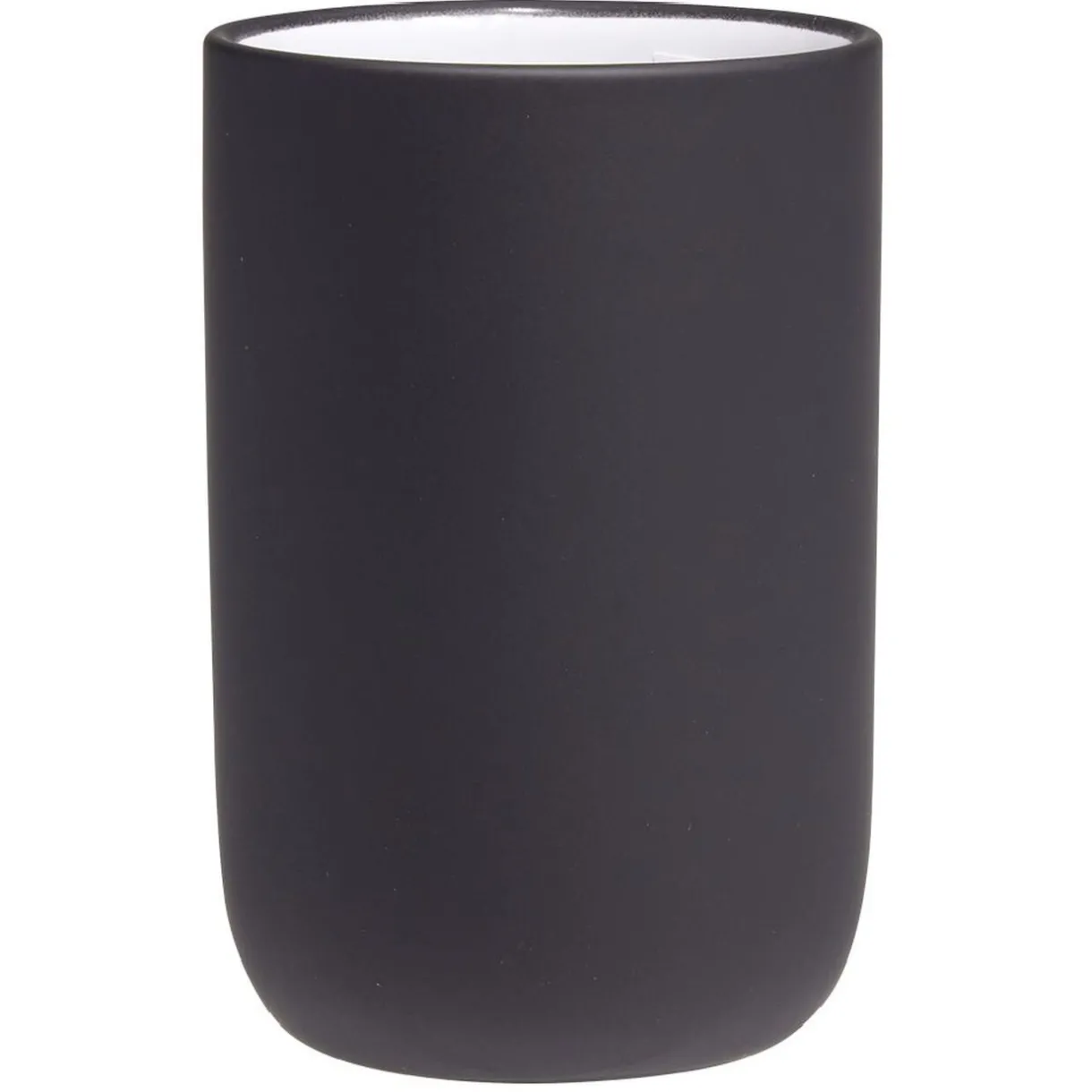 Coloris chic et intemporel de ce gobelet en céramique noire avec intérieur blanc, idéal pour finaliser le décor de votre salle de bain.